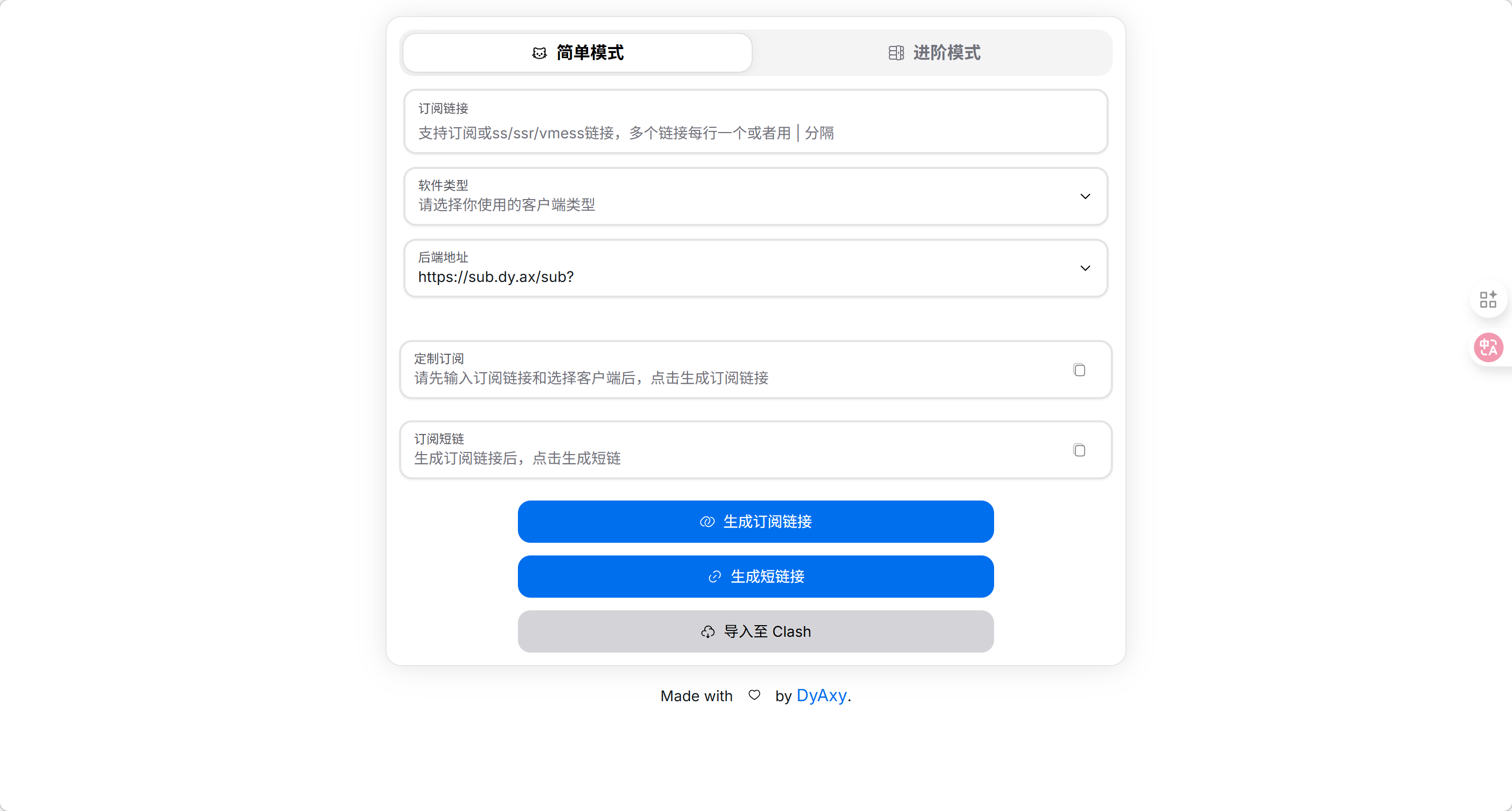 点击下方的 “生成订阅链接”。